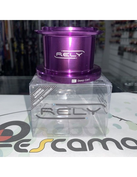 Nueva Bobina Akami Rely DC (Deep Cast) es una bobina profunda en talla 2.5, para 400 metros del 0.30, 300 metros del 0.35 o 200 metros del 0.40. Fabricadas en aluminio anodizado y con un peso de tan solo 82 gr, para una bobina de alta capacidad. Compatible con la gran mayoría de carretes SHIMANO. No es necesario cambiar el tapón de freno para usarla con los modelos actuales.