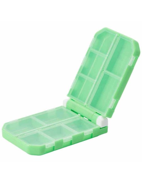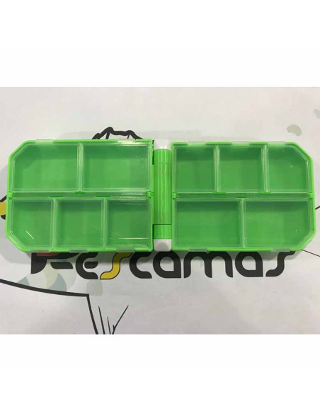 Caja de plástico con 10 compartimentos de doble cara y reducido tamaño, para almacenar y organizar anzuelos, snaps, perlitas, etc, incluso mini señuelos.