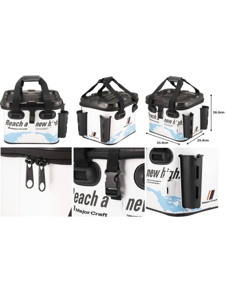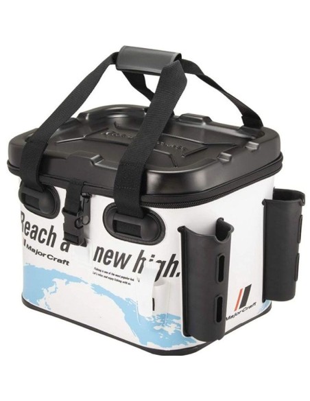 BAKKAN de la marca MAJOR CRAFT perfecto para transportar cajas de señuelos y llevarlas correctamente organizadas. Totalmente estanca y adaptada si quisieramos usarla de vivero. Dotada de dos cañeros rígidos exteriores para cañas de spinning y un porta alicates.