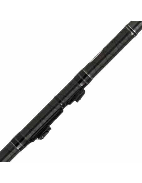 Caña para pesca boloñesa Cinnetic Cross Power Bolo Evo destinada a pescas exigentes que requieran una caña firme y potente para combatir grandes peces. Está fabricada en carbono trenzado XBR 30 Tons. Son cañas de peso contenido, rápidas de punta y con excelente equilibrio. Acción hasta 80 gramos ideal para cubrir pescas ligeras a corcheo o pescas desde acantilado. Es capaz de levantar hasta 4kg en seco y está equipada con anillas Fuji LVOG. Portacarretes de placa Fuji LS-7 BB.