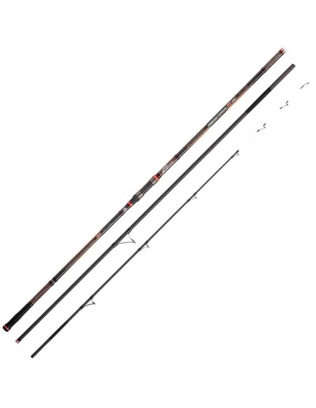 La caña surfcasting Cinnetic Rising Force Booster Jet es un producto de gran calidad y prestaciones, destinado al ámbito de la competición y pescadores que buscan un producto solvente y refinado. Su ligero y equilibrado blank, fabricado con una combinación de carbono Japonés de 40-30T, presenta un proceso de construcción fácilmente visible denominado “Diamond cross braid 45°”. Este proceso permite obtener un blank más resistente, pero muy ligero y delgado, capaz de generar una gran potencia de forma eficiente, precisa y sin rebotes. La puntera está equipada con el reconocido híbrido de Cinnetic “Flexi-tip hybrid™” de última generación. Está montada con anillas Fuji Low rider Alconite LCAG/MNAT.