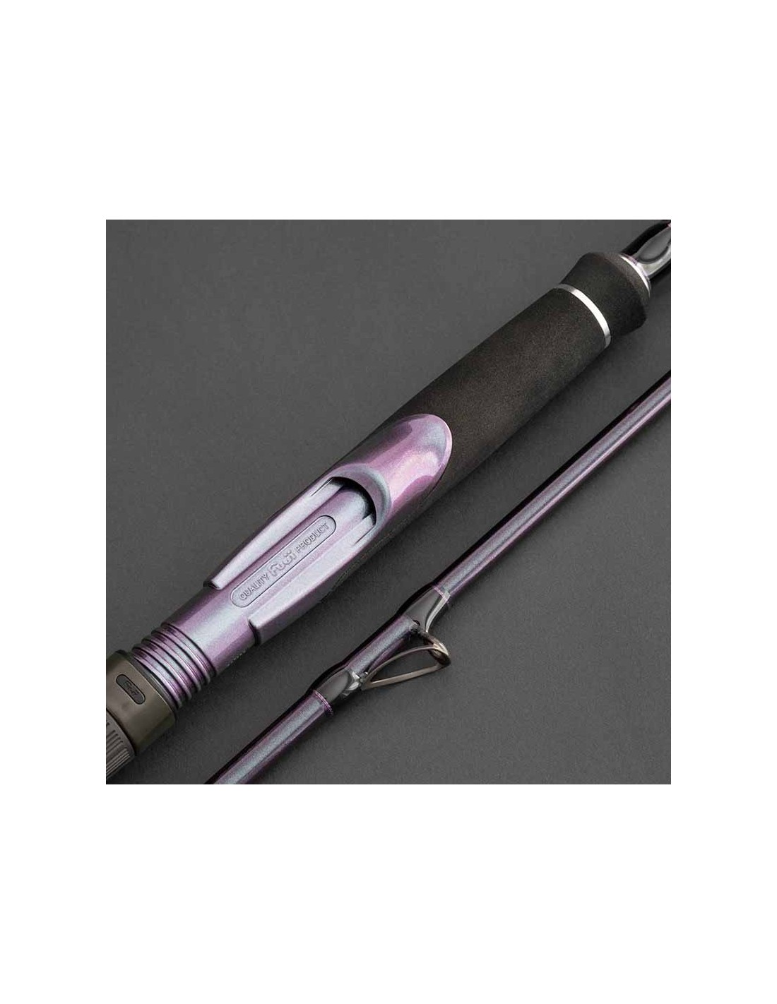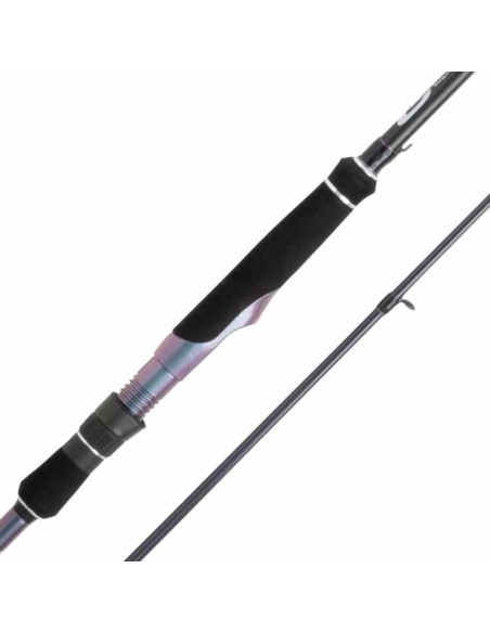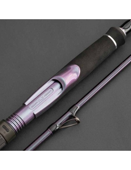 El inconfundible diseño de su blank va transitando entre gamas cromáticas de violeta, verde y gris perlado que, con distintos matices, de forma parecida a como lo hace la piel de un calamar va cambiando según el ángulo de la luz que incide en él. Está destinada a la pesca de cefalópodos como calamares, sepias e incluso pulpos. Se siente muy ligera y se muestra muy reactiva a cualquier requerimiento del pescador. Está construida en carbono japonés 30T-24T y montada con anillas Fuji BC-LCOG y un cómodo y firme portacarretes Fuji VSS. Se sirve en funda de tela con divisiones internas y cierre de velcro para protegerla de la humedad, polvo y rozaduras.