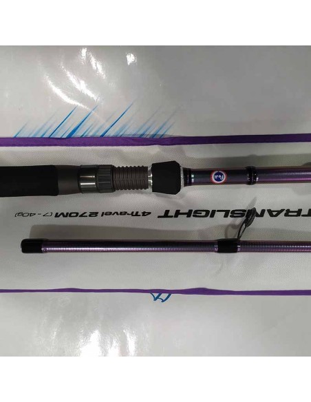 Esta caña está fabricada con una combinación de carbono 24T procedente de Japón. Caña muy cómoda tanto para transportarla en una bicicleta, moto o en el maletero de un coche pequeño, y útil como caña de reserva. Está montada con anillas Fuji BC-KLOG y porta carretes Fuji VSS. Se sirve con una funda de tela con divisiones internas que va dentro de una funda maleta de transporte semirrígida con cremallera y asa para colgar.
