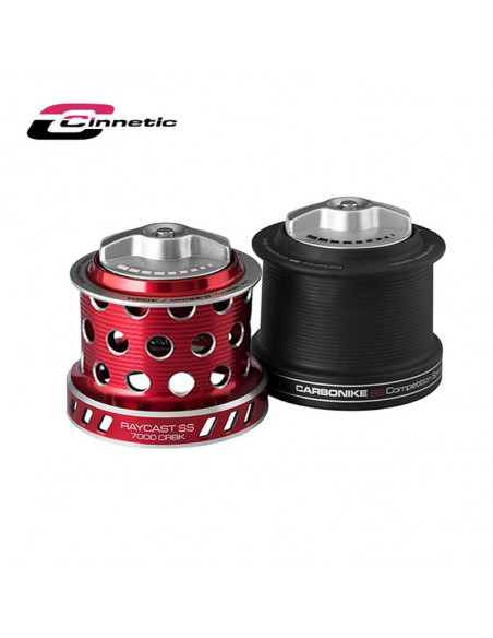El Carrete Raycast SS de Cinnetic ha sido pensado para el Surfcasting. Precisión mecánica, fiabilidad y grandes prestaciones a tu alcance gracias a sus dos bobinas de aluminio de distinta capacidad de aleación CRBK con sistema de extracción y cambio rápido de bobina. Cinnetic ha fabricado el Raycast SS con cuerpo fuerte y rígido de grafito sellado mediante junta tórica, además de sistema de freno multidisco suave y progresivo con 16Kg de potencia, rotor aligerado “Hollow rotor” y eje 100% de acero inoxidable. Guía hilos bañado de nitruro de titanio para mayor suavidad y durabilidad. El Carrete de Cinnetic Raycast SS se presenta con manivela mecanizada de aluminio y pomo antideslizante, junto a 7+1 rodamientos de acero inoxidable sellados que previenen la entrada de suciedad y cristales de sal. Cinnetic con el Raycast consigue un carrete duradero con materiales de altísima calidad, donde las prestaciones y cualidades nos ayudaran a disfrutar de largas y buenas jornadas de pesca.