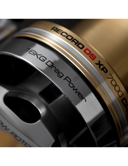 Carrete Cinnetic Record DS XP 7000 CRBK, una máquina a la altura de los mejores surfcasters, con un sistema de rotación súper suave y una excelente precisión mecánica.