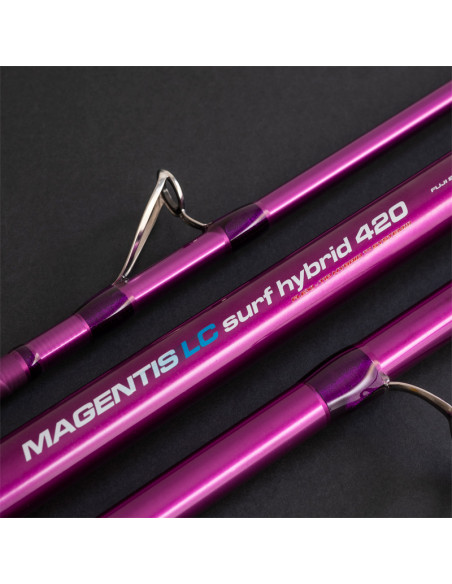 La Caña Magentis LC Surf Hybrid 420 de Cinnetic representa a la nueva generación de cañas para surfcasting. A pesar de ser un producto de un precio popular, su valor no solo resiste en tener un gran atractivo visual sino que, tras analizarlo en detalle, despierta el interés tanto de pescadores ocasionales como de los mas veteranos y expertos, obteniendo un merecido valor añadido gracias a sus dignas prestaciones, su cuidado detalle y la calidad de los componentes utilizados en su fabricación. Está construida con carbono radial HRC24T y puntera hibrida de carbono. Dispone de anillas Fuji CCLCOG con bastidor de acero inox ” Frosted Silver Gray ” y portacarretes Fuji DPS. Se sirve con una práctica funda de tela con divisiones internas y cierre de velcro.