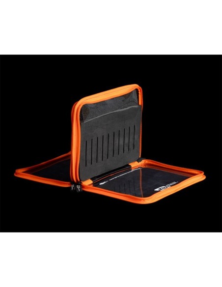 Este estuche que nos propone CINNETIC es cómodo y funcional y nos permite almacenar una buena cantidad de EGIS en las bases de foam de sus dos caras, además de poder visualizarlos fácilmente a través de sus tapas transparentes y protegerlos del salitre.