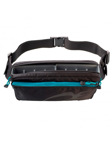 Usada en la cintura o sobre el hombro, este bolso tiene capacidad para 10 jibioneras. Negro con el logo de la sepia Emeraldas en el frente, este bolso no sólo es práctico, sino que también es muy estético. Un segundo bolsillo en la parte delantera del bolso permitirá almacenar mosquetones, tijeras y otros accesorios. Los compartimentos interiores de la riñonera son extraibles para endulzar facilmente las jibioneras en el exterior.