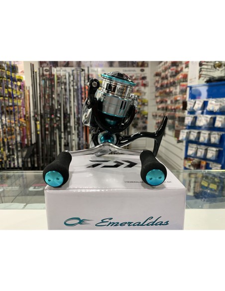 El carrete Emeraldas V LT llega con una hermosa manivela con doble puño redondo de EVA. Esta edición V hace accesible las prestaciones de la gama LT para la pesca de cefalópodos. Disponible en tamaños 2500 y 3000, está dotado con las últimas tecnologías Daiwa: el freno ATD, el rotor del aire y el aceite Magsealed. Con el carrete Emeraldas V LT, disfrutaréis de numerosas cualidades. La suavidad de rotación está garantizada por la aerodinámica del rotor en arco. La potencia se encuentra en todas las etapas: el arco del pick-up tubular ancho y hueco hecho en duraluminio, la rueda de control Tough Digigear, el freno ATD con su grasa de alta tecnología y su tapa de apriete de tamaño completo o la manivela doble con empuñaduras redondas de EVA. La estanqueidad del bastidor está garantizada por el aceite MagSealed ,que está colocado en un campo magnético para garantizar la fluidez y al mismo tiempo garantiza cualquier intrusión de elementos externos. El más joven de la gama Emeraldas no hace concesiones en cuanto a calidad y rendimiento.