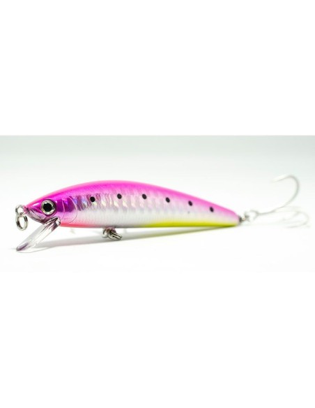 En este caso CANDY PREY es un Jerkbait duro muy completo, en el se unen muchas y muy buenas características. Empezaremos con su tamaño, sus 80 mm lo hacen perfecto para ser presa de casi cualquier tipo de depredador, muy embocable tanto por especies de agua saldada como de agua dulce. En recogida lineal su contoneo es muy vistoso, desplazándose de lado a lado perfectamente. Por otro lado cuando queremos jerkear con el, nos permite tirones bruscos con un STOP & GO muy efectivo o recuperaciones erráticas para imitar un pez huyendo despavorido. Comentar que al ser un artificial SLOW FLOATING la acción es muy similar a un artificial suspendido. Todo esto lo rematan unas libreas espectaculares y unos triples de una calidad más que aceptable.