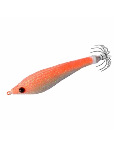 La jibionera DTD con sus vivos colores y sus efectos translúcidos y fluorescentes, es un señuelo ideal para la pesca de cefalópodos. Los acabados son muy realistas, ojos de color rojo muy atrayentes, forrada con silicona blanda y tela especial que cambia de color al contacto con el agua. Equipadas con emerillon y potera en acero inoxidable.