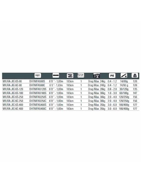 CAÑA HART MIURA JIG FK60S 250 1.83 M 120-250 GR DHTMIFK6250S