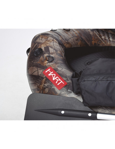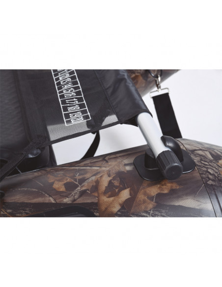 Pato construido enteramente en poliéster recubierto de PVC de 1.000 Deniers. El espesor de su cubierta está sobredimensionado hasta 1,1 mm (en vez de los 0,7 mm de los patos standard) y “tatuado” en un bonito camuflaje. Esta piel tan gruesa le proporciona una gran protección contra enganches, desgarros y pinchazos.