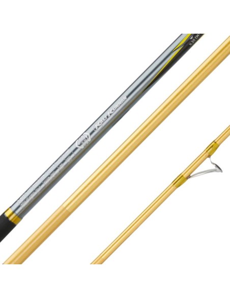 Caña de surf casting modelo Artemis fabricada en carbono de alto módulo con excelente relación potencia-peso, montada con anillas Fuji Low Rider y portacarretes Fuji DPS a rosca. Puntero híbrido más bien duro pero marcador de punta provisto de cinta reflectante en la zona del injerto.. Es una caña de 22 MM de book y ligera, pero con acción hasta 250 gramos.
