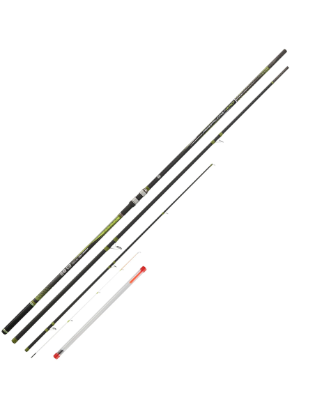 Caña ideada específicamente para el Surfcasting ligero o Beach Ledgering. Esta técnica de pesca que está resultando imprescindible en la competición, se caracteriza por la utilización de aparejos muy finos y plomos ligeros para presentaciones más discretas y naturales. Esta caña de tres tramos está fabricada en Carbón HM con 2 punteras intercambiable que nos permitirán tener una extraordinaria sensibilidad a la picada. La puntera, viene pintada en blanco y naranja flúor, y cinta reflectante para una perfecta visualización de la picada tanto de día como durante la noche. Su acción 60/170g permite pescar en corta y media distancia sin dificultad. Montada con anillas Fuji Fazlite K Concept anti-enredos.