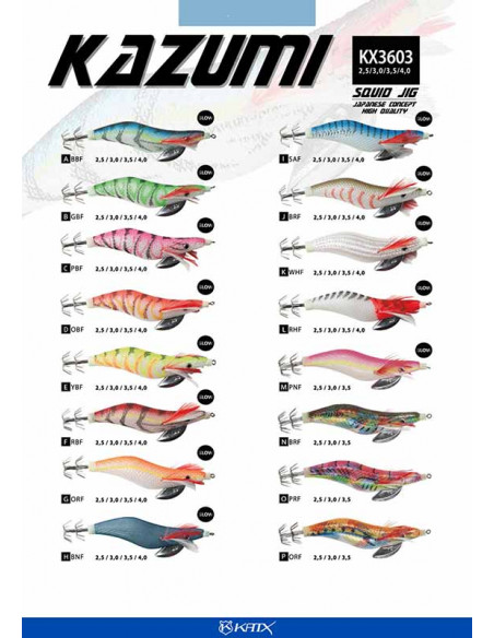 Jibioneras económicas de la marca Katx, la gama Kazumi plomada se presenta con una amplia gama de colores y en tamaños de 2.5, 3.0, 3.5 y 4.0