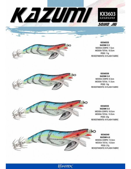 Jibioneras económicas de la marca Katx, la gama Kazumi plomada se presenta con una amplia gama de colores y en tamaños de 2.5, 3.0, 3.5 y 4.0
