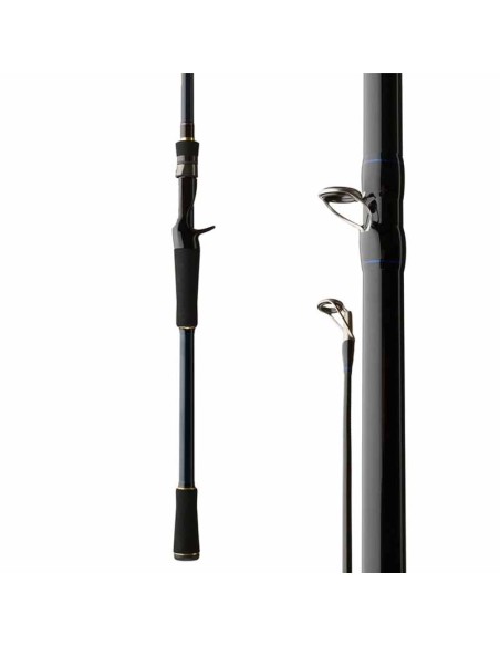Su blank, en azul oscuro, transmite enseguida cada toque y picada (100 % carbono). Montada con anillas Fuji, ligeras y resistentes. Para pescar con grandes swimbaits y pesca del lucio. La acción le permite tener una lucha segura con los peces.