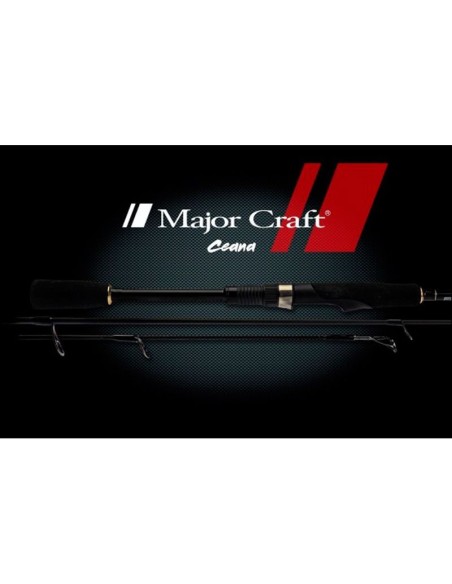 MAJOR CRAFT CEANA es una de gama de cañas de spinning ligero y ultraligero que ofrece al pescador una relación calidad precio muy buena. Son cañas con la garantia de fabricación de MAJOR CRAFT pero a un precio muy accesible para todo aquel pescador que quiera empezar a coquetear con cualquiera de estas dos modalidades de pesca. Monta anillas con Bastidor Fuji y cerámica Fazlite y son de acción extra rápida (EXTRA FAST). Disponibles en muchas acciones y medidas que podéis consultar en la tabla incluida en una de las imágenes.