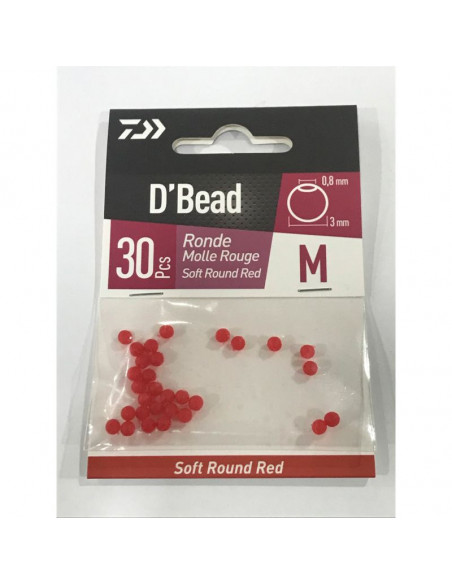 La perla blanda D´Bead de Daiwa tiene un diámetro exterior de 3 mm e interior de 0,8mm y es ideal para usarla de tope para proteger nudos de montajes correderos o el choque de aparejos en los que colisionan elementos metálicos, de este modo evitaremos roturas o el deterioro del material con el que confeccionamos esos aparejos.