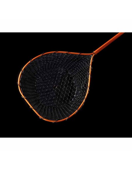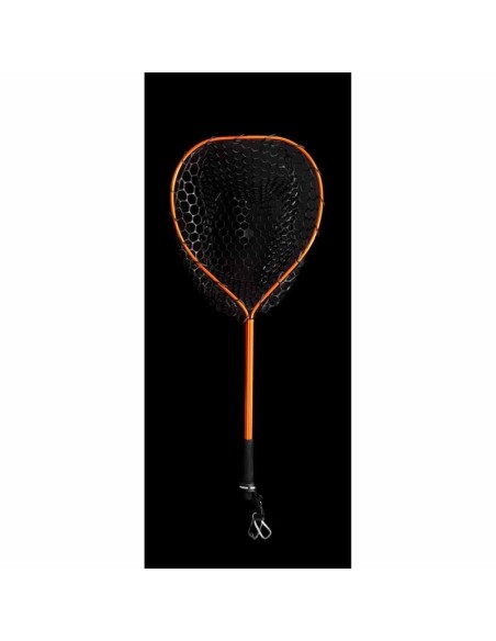 Ideal para aquellos pescadores que necesitan una sacadera de vadeo de grandes dimensiones o para pescar desde el kayak. Fabricada en aluminio anodizado naranja. Su malla es 100% de goma para evitar que las coronas o triples de nuestros señuelos se en reden en ella. Tiene una longitud total de 100 cm y las medidas de su cabe za son de 45 x 50 cm. El mango está terminado en espuma EVA HD, tiene una longitud de 100 cm y la cabeza tiene un diámetro de 45 cm. La profundidad de la malla es de 35 cm y su calado es de 30mm. Dispone de una correa con anclaje rápido y mosquetón para poder colgar. Con las nuevas mallas “RUBBER MESH” evita los molestos enganchones con las coronas de los egis.