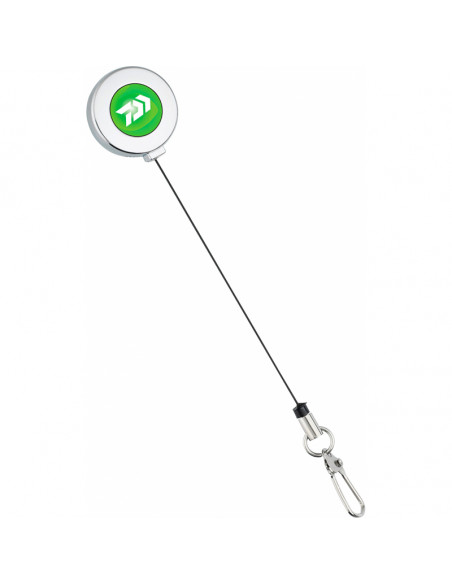 Este cómodo botón extensible se fija a la ropa, chalecos, mochilas o riñoneras mediante un imperdible. Podemos enganchar en el unas tijeras, corta hilos o un pequeño desanzuelador por ejemplo, pudiendo extenderlo hasta 55 cm para usarlo y volviendo a su posición inicial tras haber terminado.