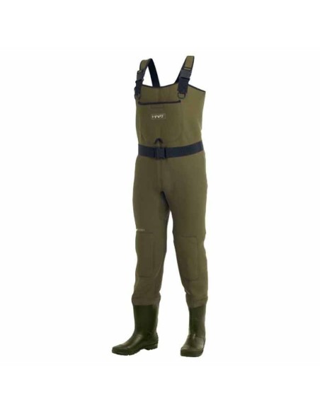 Vadeador de neopreno de 4.5mm de espesor. Bota de PVC integrada. Tirantes de neopreno regulables. Rodilleras preconformadas y bolsillo exterior en el pecho con cierre velcro. Anillas de nylon para colgar accesorios al pecho. Bolsillo interior de nylon. Cinturón de nylon. Incluye kit para reparaciones de emergencia. Bolsa de transporte de nylon.